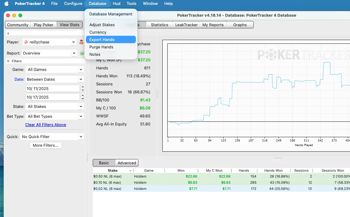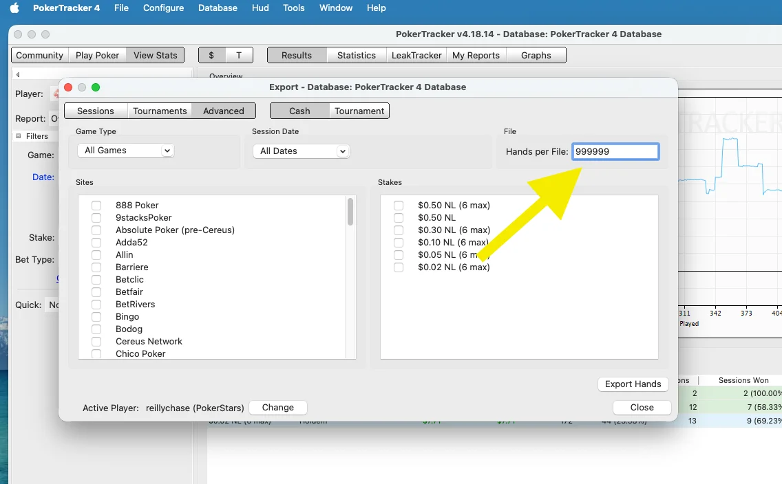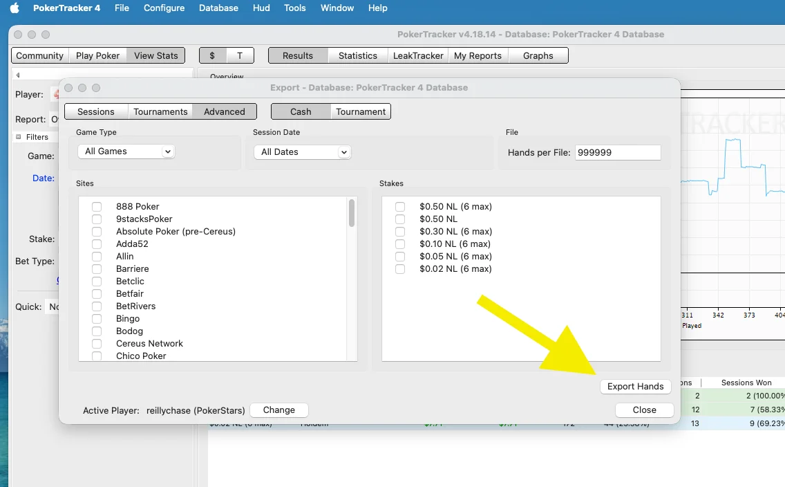 Click "Export Hands"